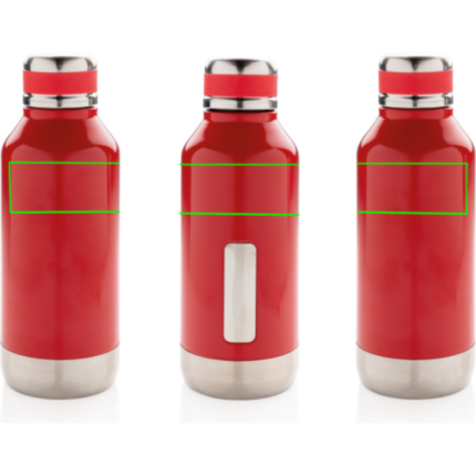 Leakproof vacuum insulated bottle with twist off lid. With unique logo position on the front. 304 stainless steel inner and 201 stainless steel outer keeps your drinks hot 5h and cold 15h. Content: 500ml.