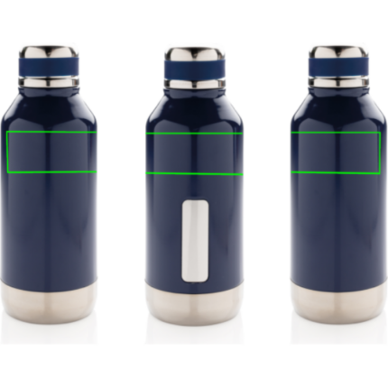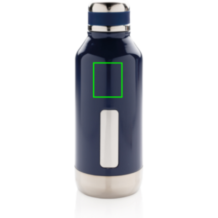 Leakproof vacuum insulated bottle with twist off lid. With unique logo position on the front. 304 stainless steel inner and 201 stainless steel outer keeps your drinks hot 5h and cold 15h. Content: 500ml.