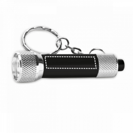 Aluminium keyring with a 3 LED flashlight. Includes 4 LR44 batteries. ø17 x 62 mm