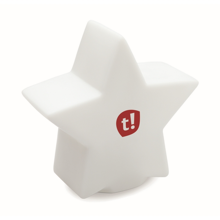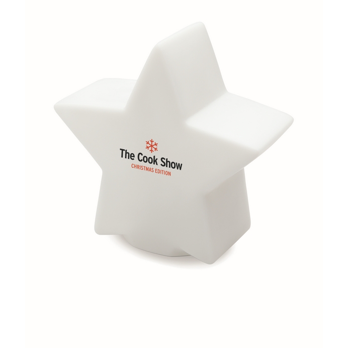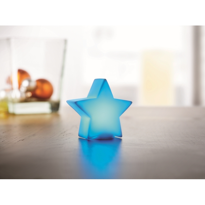 PVC LED colour changing light in star shape. Mood lights colours: white, blue, purple, red, yellow and green. 3 LR44 batteries included.