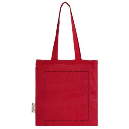 The Madras tote bag made from 100% GRS certified recycled cotton is the perfect bag to give away during any event, conference or to use as a shopping bag for small groceries. The cotton density of 140 g/m² cotton makes the bag sturdy, long-lasting and suitable to carry heavy items in the main compartment. With the 30 cm long shoulder handles this tote bag is easy to carry around. The print methods available for this tote bag are also GRS certified, making sure that the entire supply chain is transparent and certified. Made in India. Resistance up to 5kg weight.