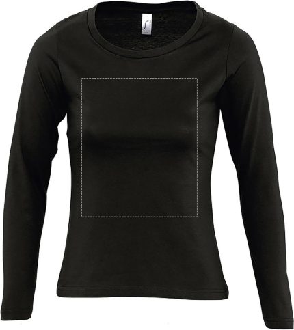 SOL’S MAJESTIC long-sleeved women’s top/T-shirt with reinforced neck seam, slightly wider neck with ribbed collar with elastane, straight cuffs, tubular knit. Fabric details: 150g/m², single jersey, 100% semi-combed ringspun cotton. OEKO-TEX®. Only sold with print