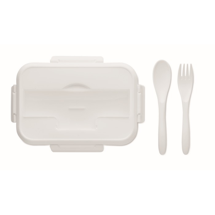 Two-tier PP lunch box with matching cutlery set and a handle.Total capacity : 1000 ml