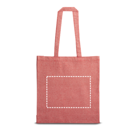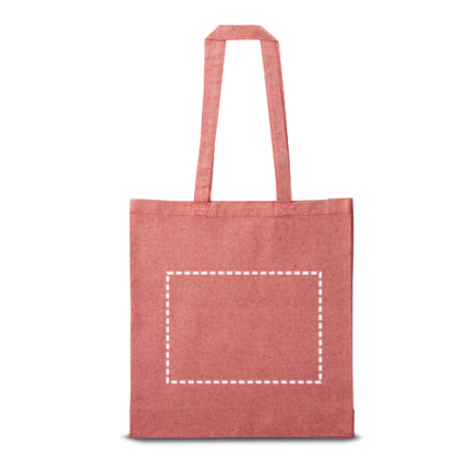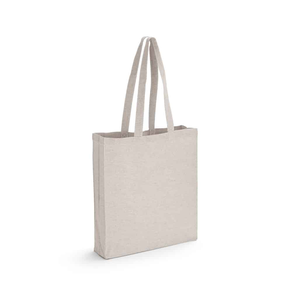 Bag with recycled cotton (140 g/m²) and 68 cm handles. 380 x 410 x 100 mm