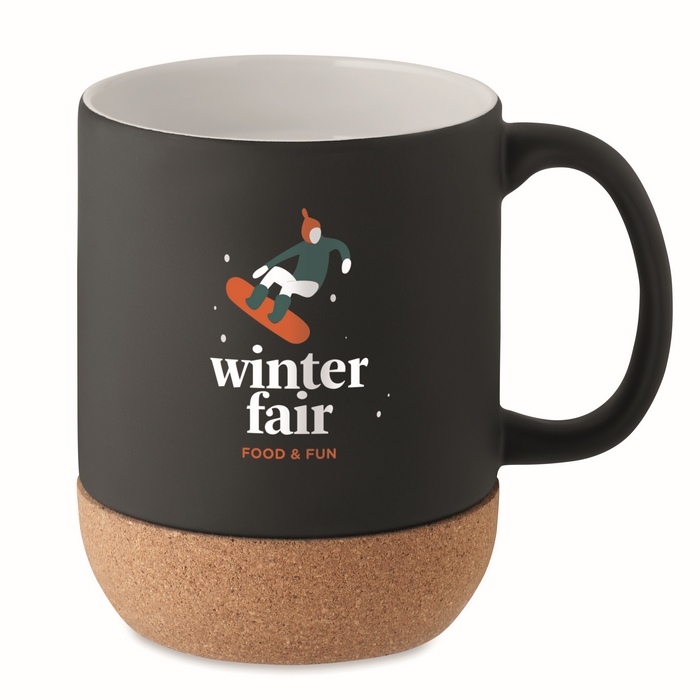 Matt ceramic mug with cork base detail. Capacity: 300 ml.