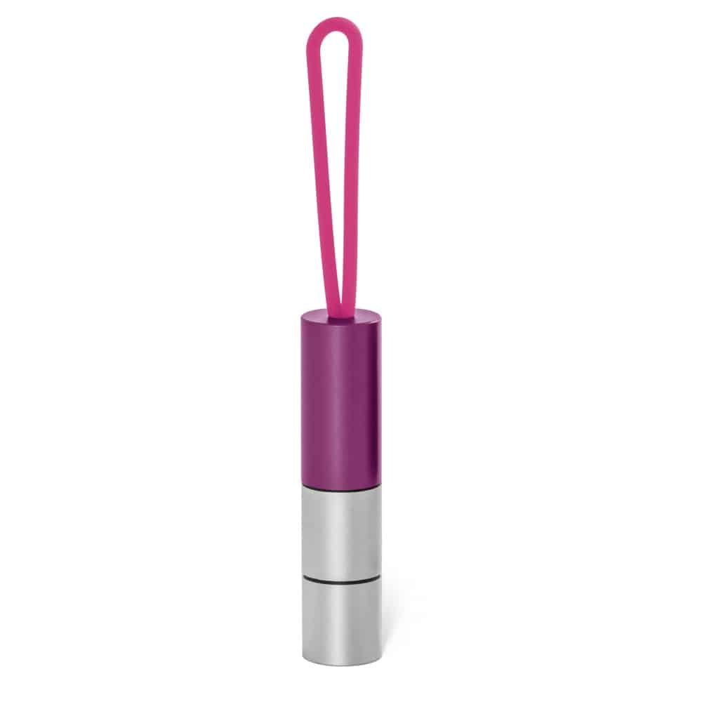 Aluminium torch with 1 LED, compartment for tablets and silicone handle. Includes 3 LR44 batteries. ø17 x 73 mm | Silicone band: 60 mm