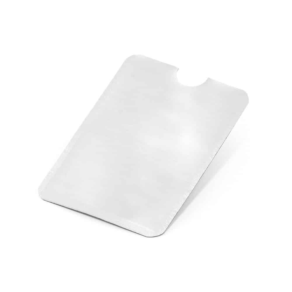 Aluminium credit card protector with RFID blocking technology, with capacity for one card. 92 x 63 mm