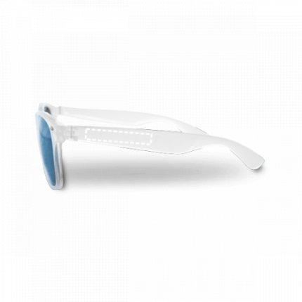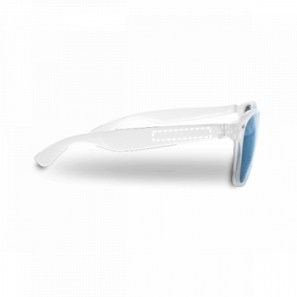 PC sunglasses with translucent frames, category 3 mirrored lenses and UV400 protection. Complying with EN ISO 12312-1. 146 x 49 x 150 mm