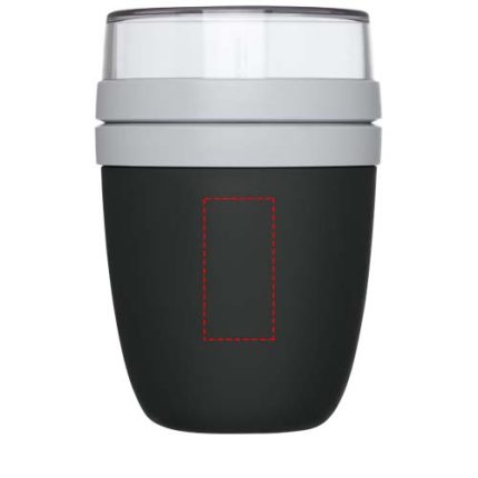 Lunch pot featuring two different compartments to keep the different ingredients separated. Both containers have a separate lid and therefore remain clean. The content of the top transparent container is 200 ml, which means that it can hold about 75 grams of solid food. The capacity of the bottom container is 500 ml. Made of durable material and can be used in the freezer, the microwave (remove the lid) and dishwasher. The top transparent container should not be used in the microwave. Leakproof. BPA free. 2 years Mepal warranty.