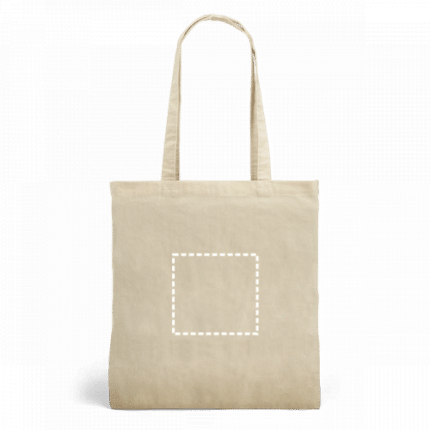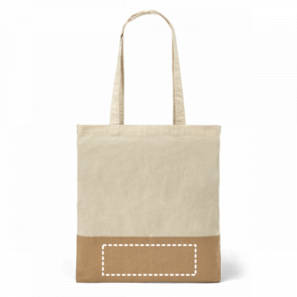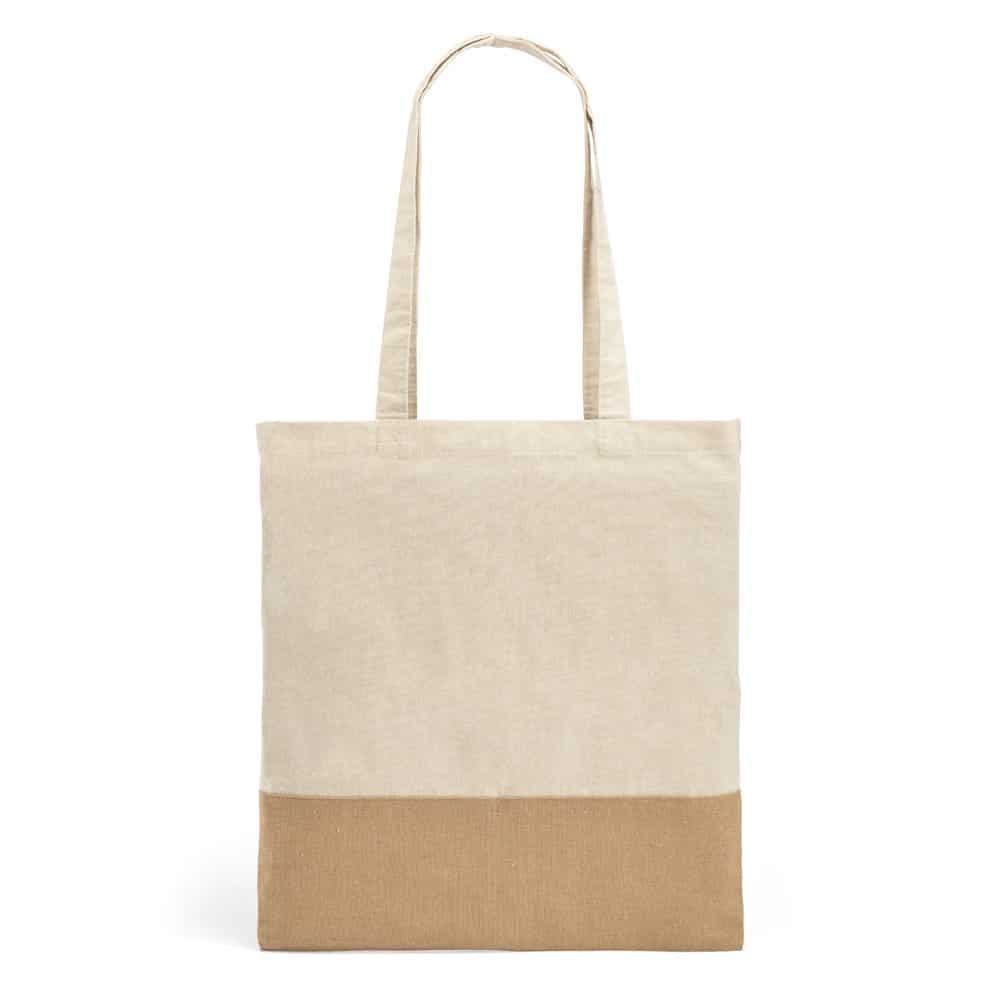100% cotton bag (160 g/m²) with imitation jute detail and 65 cm handles. 375 x 415 mm
