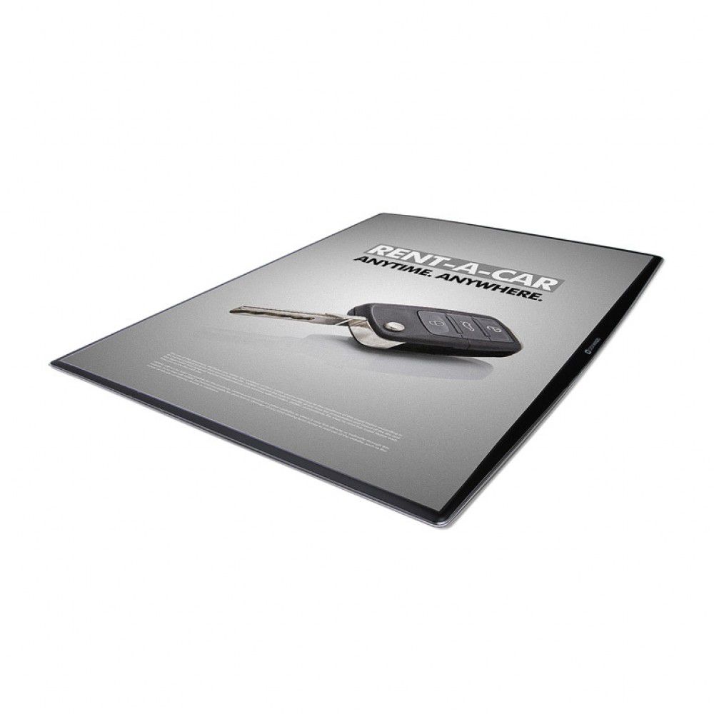 Mesa counter poster display. Highlight your promotion at the point of purchase by displaying the ultra-thin Mesa counter poster display. Ideal for placing at the cash desk. Available in A3 and A4 format, with anti-slip for desk top application and an easy and quick poster change. Ideal for promotions or providing payment information. A patented design for poster communication on counters and at cash points, with the Mesa!
