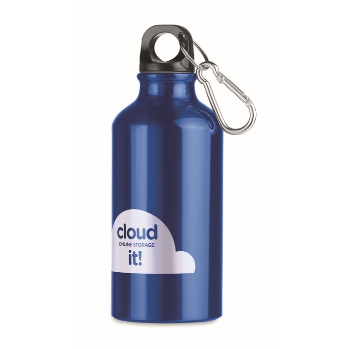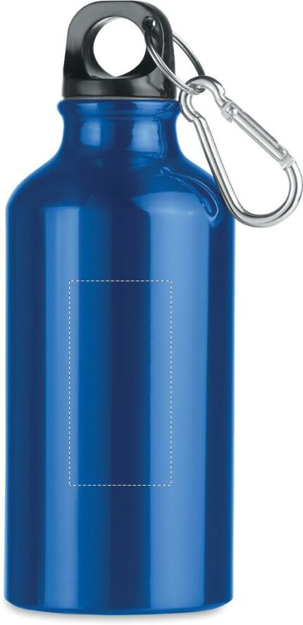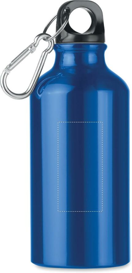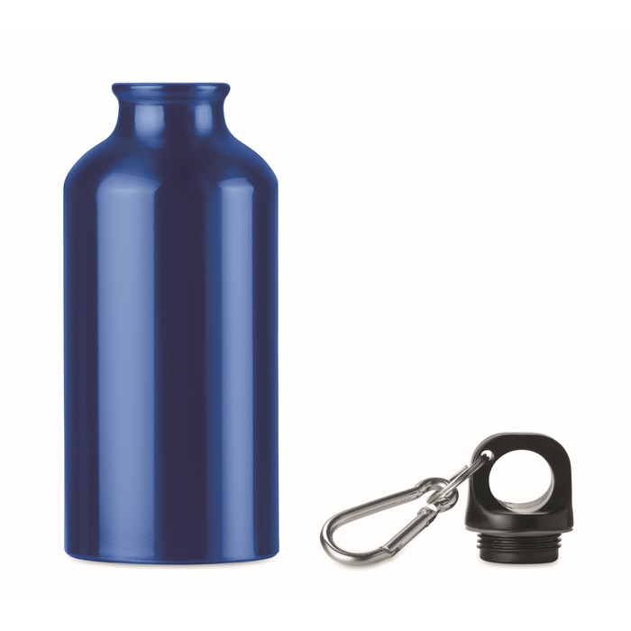 Aluminium single layer bottle with carabiner. 400 ml. Sublimation print available on white item only. Leak free.