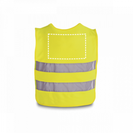 100% polyester reflective kids’ vests. This product features 2 horizontal reflective bands, a side self-adhesive hook and loop fastener and has EN 17353 certification. One size: 370 x 470 mm