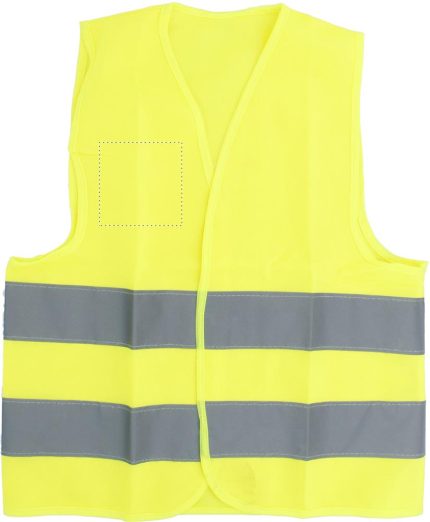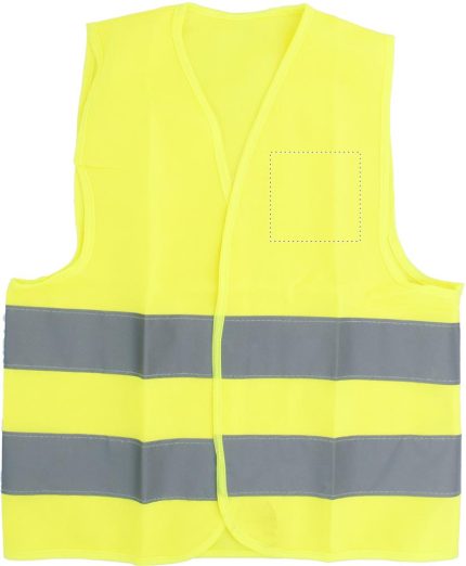 Child high visibility vest with 2 horizontal reflective bands. 100% polyester. EN17353.