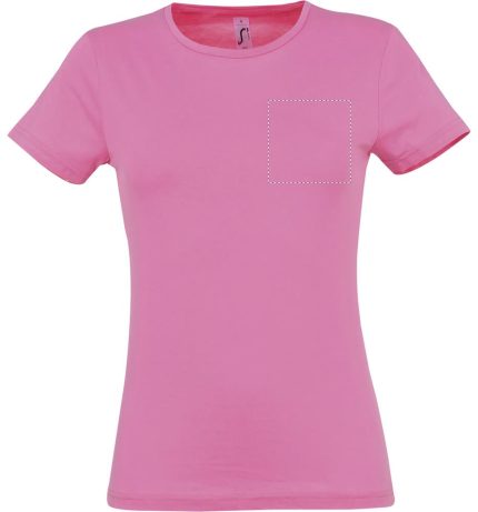 SOL’S MISS Women’s T-shirt comes in 24 colours and with its fitted cut is extremely popular across the European market. Reinforced taped neck, modern fitted cut with sewn fit with side seam and slim collar. Fabric details: 150g/m² in 100% semi-combed ringspun cotton. OEKO-TEX®. Only sold with print