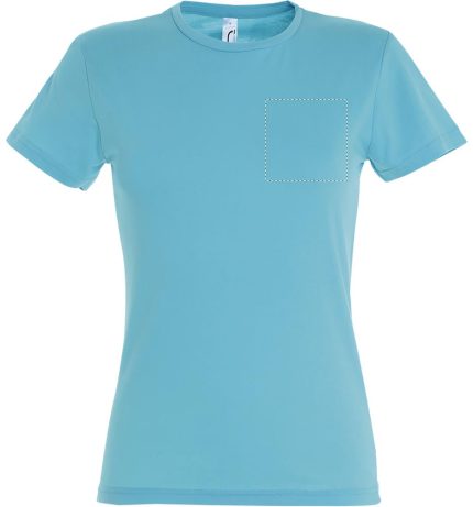 SOL’S MISS Women’s T-shirt comes in 24 colours and with its fitted cut is extremely popular across the European market. Reinforced taped neck, modern fitted cut with sewn fit with side seam and slim collar. Fabric details: 150g/m² in 100% semi-combed ringspun cotton. OEKO-TEX®. Only sold with print