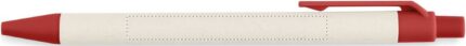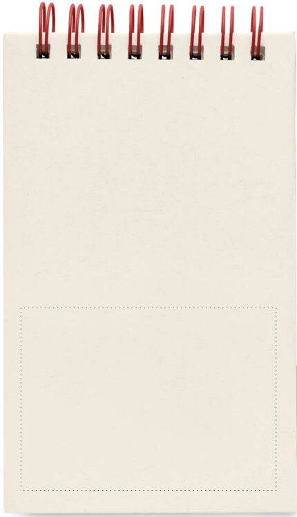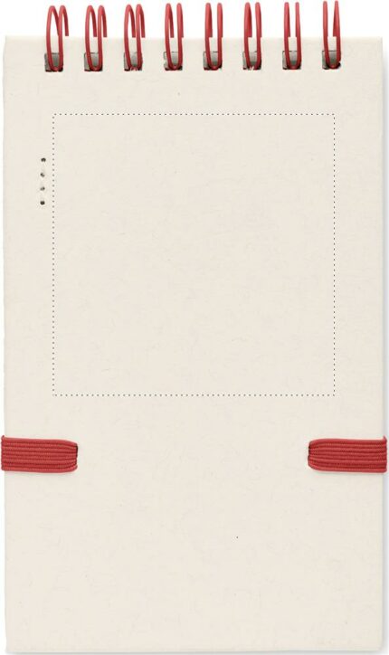 A6 Recycled milk cartons 70 sheet recycled plain paper notebook (70 % recycled milk carton and 30% recycled paper) with matching pen. Ring bound. Matching push button ball pen. Blue ink. Elastic closure strap and pen holder.