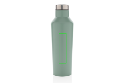 A beautiful contemporary vacuum stainless steel bottle that makes a statement. With its unique design this bottle is a definite asset to your essentials. Made of high quality stainless steel with leakproof screw on lid. It keeps whatever you fancy cold for up to 15 hours or hot for up to 5 hours. BPA free.