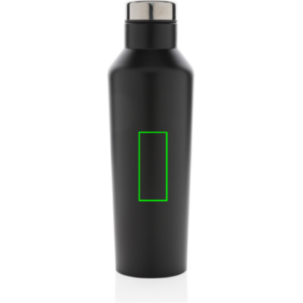 A beautiful contemporary vacuum stainless steel bottle that makes a statement. With its unique design this bottle is a definite asset to your essentials. Made of high quality stainless steel with leakproof screw on lid. It keeps whatever you fancy cold for up to 15 hours or hot for up to 5 hours. BPA free.