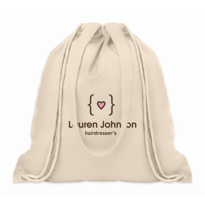 Canvas shopping bag with long handles and drawstring. 220 g/m².