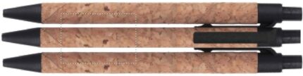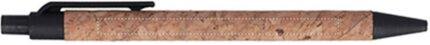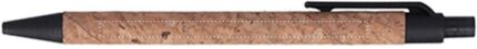 Push button ball pen with cork barrel and Eco-friendly wheat straw (50%) and ABS plastic (50%) fittings. Blue ink. Cork is a natural material, due to its structural nature and surface porosity the final print result per item may have deviations.