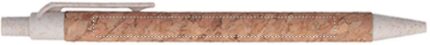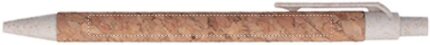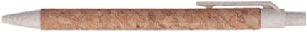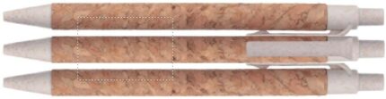 Push button ball pen with cork barrel and Eco-friendly wheat straw (50%) and ABS plastic (50%) fittings. Blue ink. Cork is a natural material, due to its structural nature and surface porosity the final print result per item may have deviations.