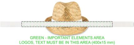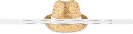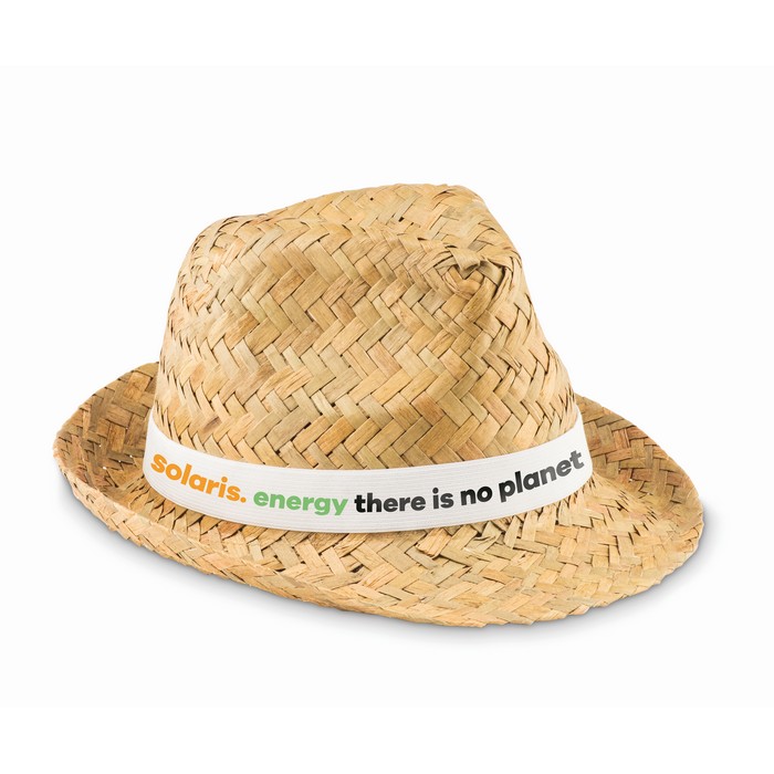 Natural straw hat with polyester band. For unprinted orders band will be supplied unattached to the item.