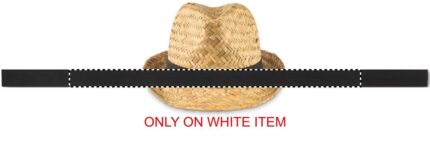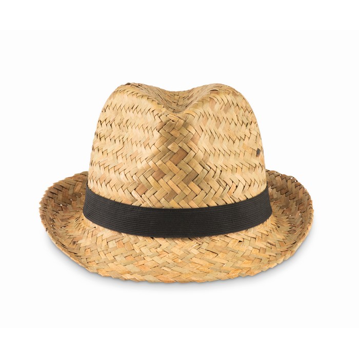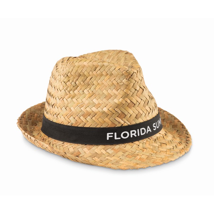 Natural straw hat with polyester band. For unprinted orders band will be supplied unattached to the item.