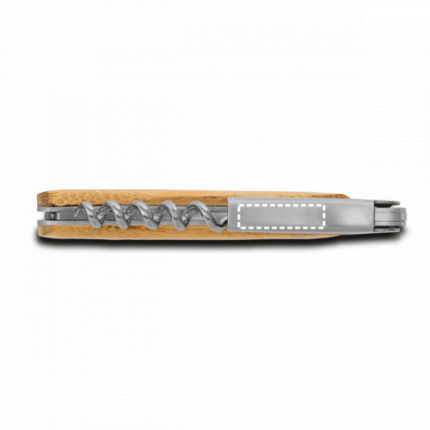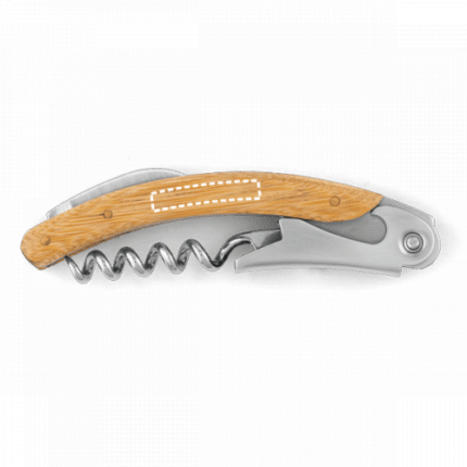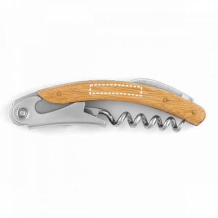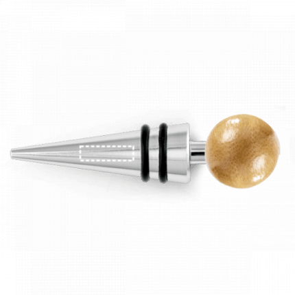 Wine set with 4 pieces in wood and metal: corkscrew with sommelier knife, drip stopper, pourer with lid and stopper. Supplied in a cork gift box. ø144 x 42 mm