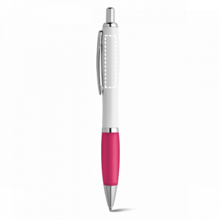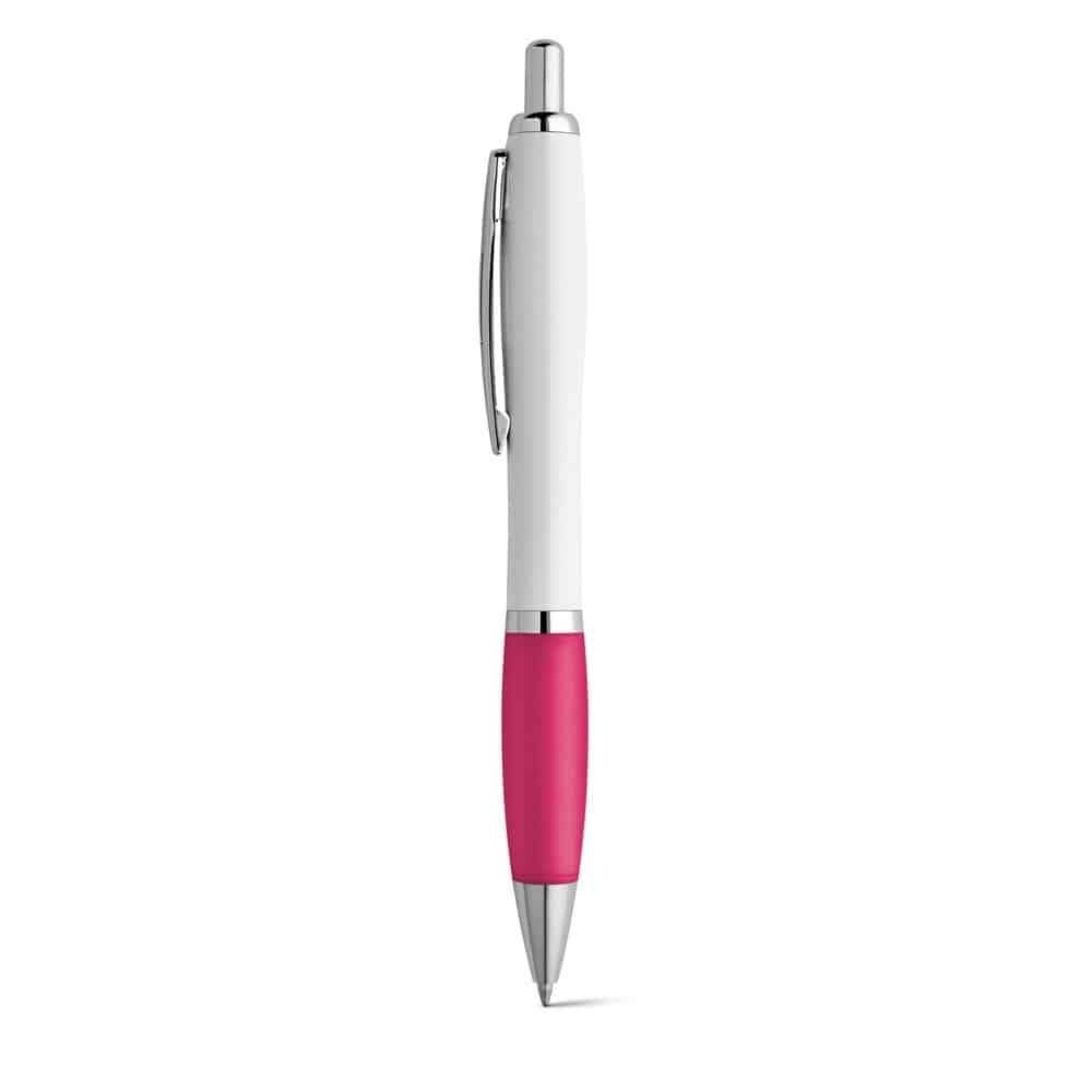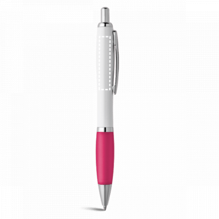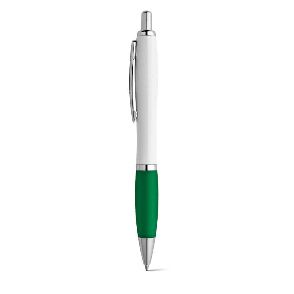 Ball pen with clip and metal trim. Coloured non-slip grip and white body. Black ink. ø12 x 140 mm