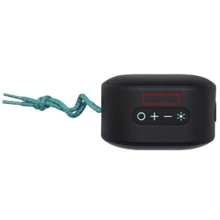 Powerful 7W IPX6 certified wireless speaker that is perfect for outdoor activities like a picnic, BBQ, beach or pool party. The built-in 1500mAh battery ensures up to 4.5 hours of playback time at max volume with RGB mood light ON. Bluetooth® 5.0 with a range up to 10 meters. Built-in microphone, pick-up function, and voice assistant for hands-free control. The speaker has an AUX jack and TF card slot (card not included). Delivered in a premium gift box.