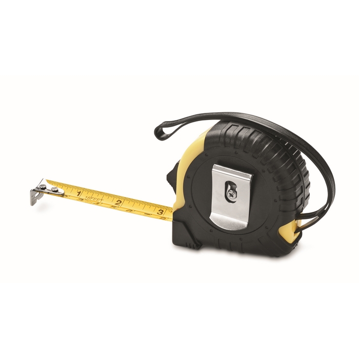 3M measuring tape in recycled ABS. Including hand strap and silver metal clip.