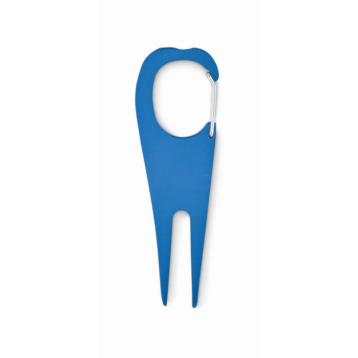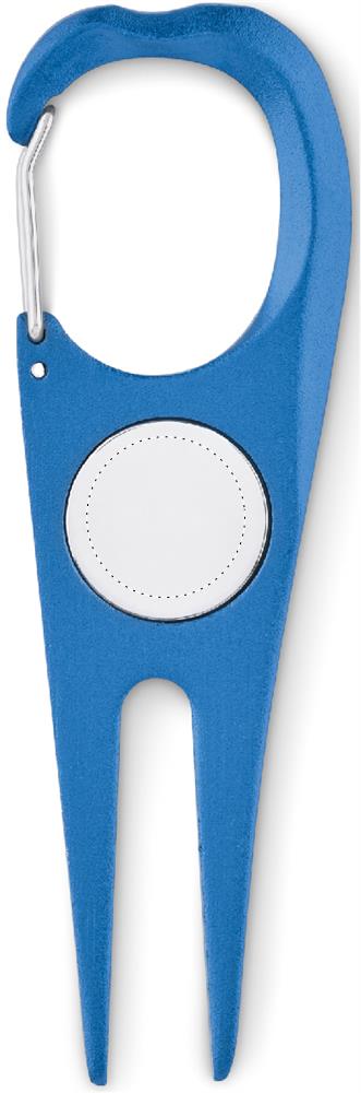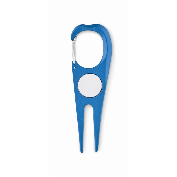 Aluminium golf divot tool with magnetic detachable ball marker.