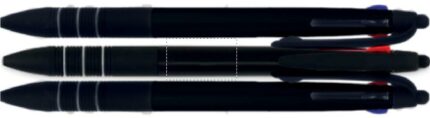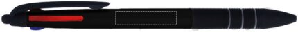 ABS pen with stylus and 3 ink colours: red, blue and black.