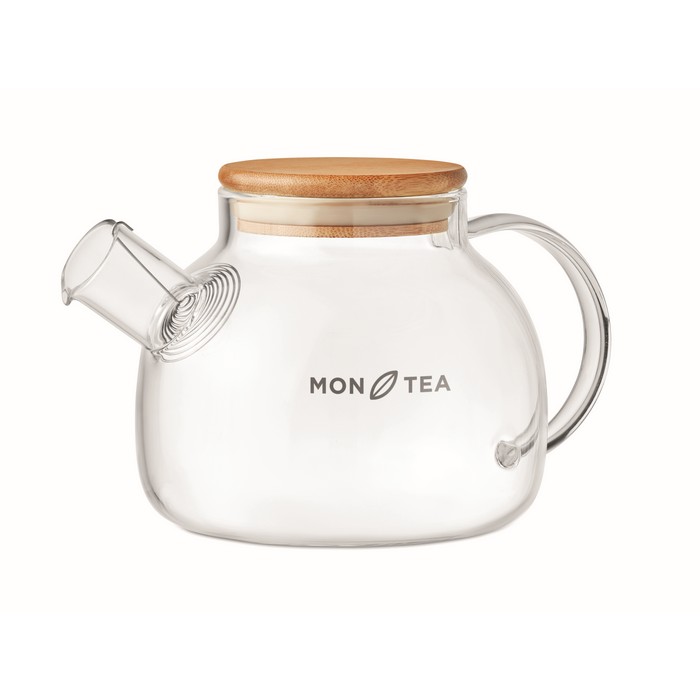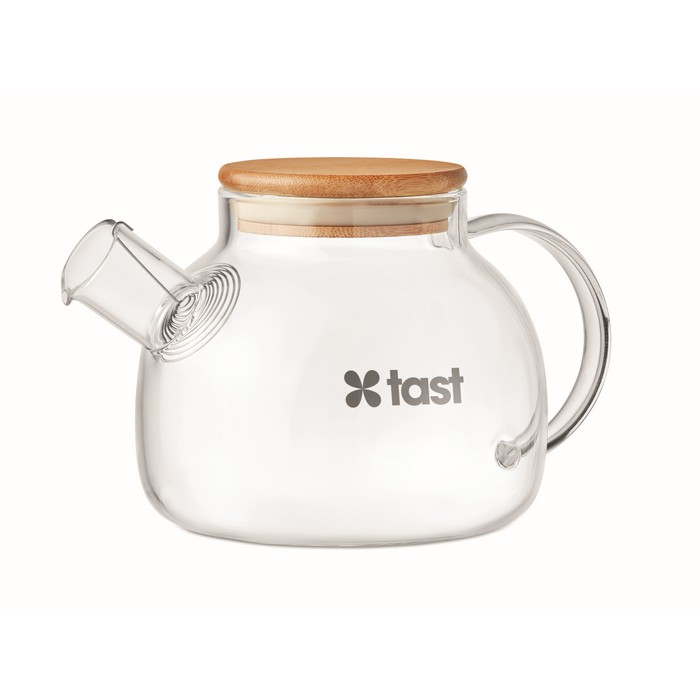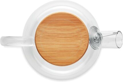 High borosilicate glass teapot with stainless steel infuser and bamboo lid,. Capacity 850 ml. Bamboo is a natural product, there may be slight variations in colour and size per item, which can affect the final decoration outcome.
