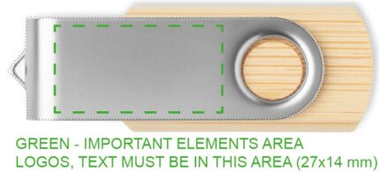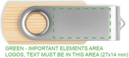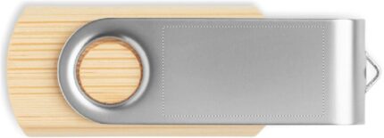 16GB USB Flash Drive with bamboo casing and protective metal cover. Rotate the cover and connect to USB port to start using it.