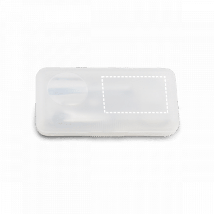 Four-piece manicure set with nail clipper, scissors, tweezers and cuticle pusher. Supplied in a case. 100 x 53 x 20 mm