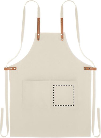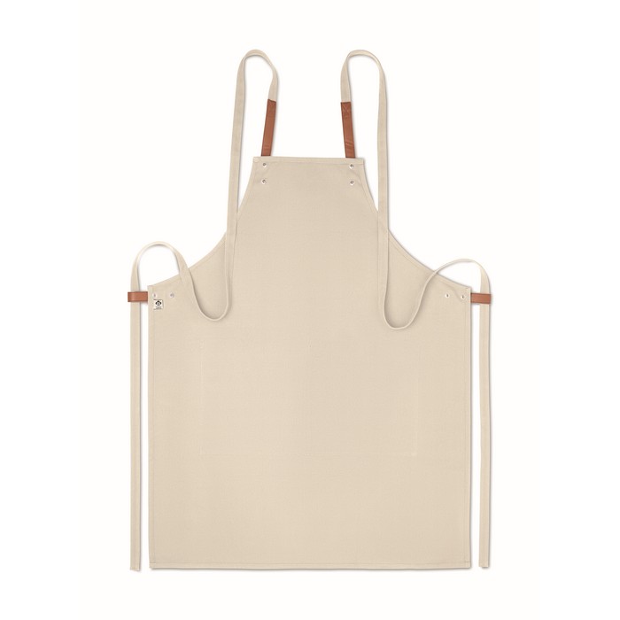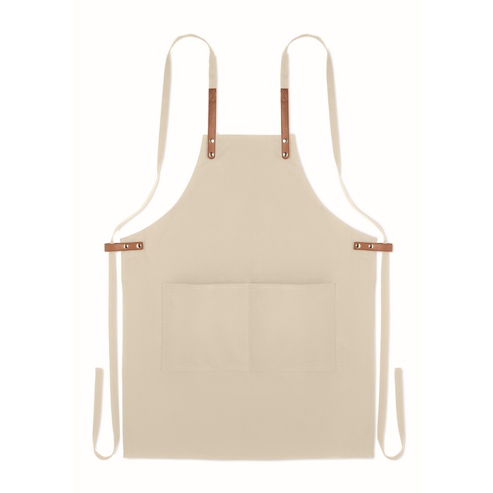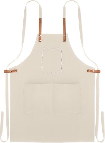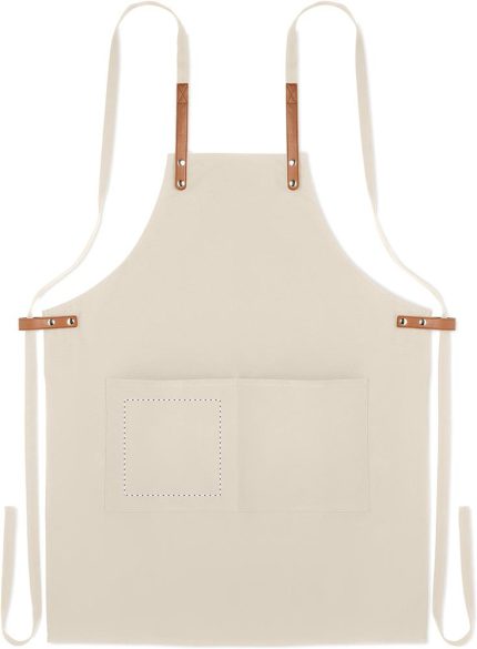 Adjustable kitchen apron with 2 front pockets in 340 gr/m² organic cotton/canvas.