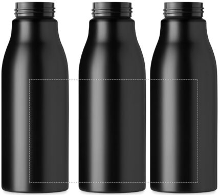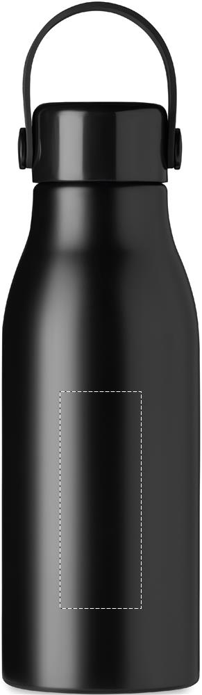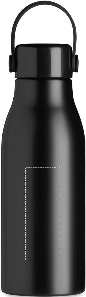 Single wall aluminium bottle with ABS lid with silicone hanger. Capacity 650 ml.