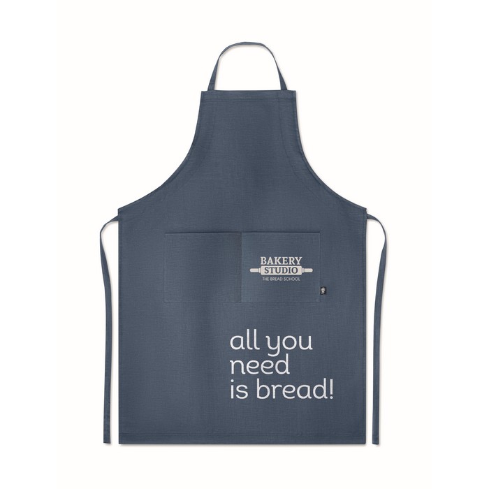 Adjustable kitchen apron with 2 front pockets in 100% hemp fabric. 200 gr/m².