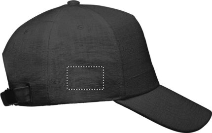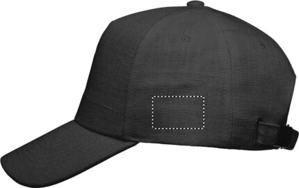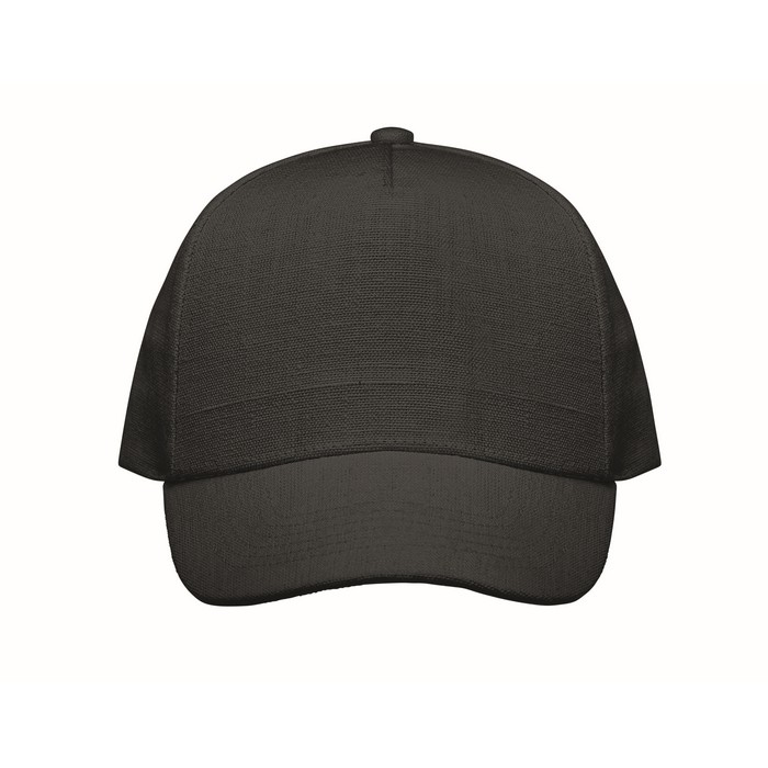 5 panel baseball cap in 100% hemp fabric 370 gr/m² with brass clips on adjustable strap closure. 5 stitched eyelets in matching colour. Size 7 1/4.