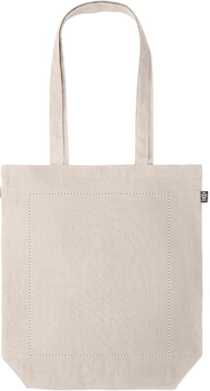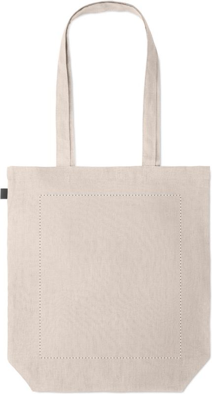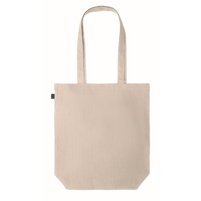 100% hemp fabric shopping bag with long handles with gusset in the bottom. 200 gr/m².