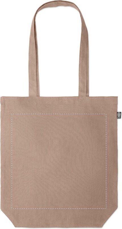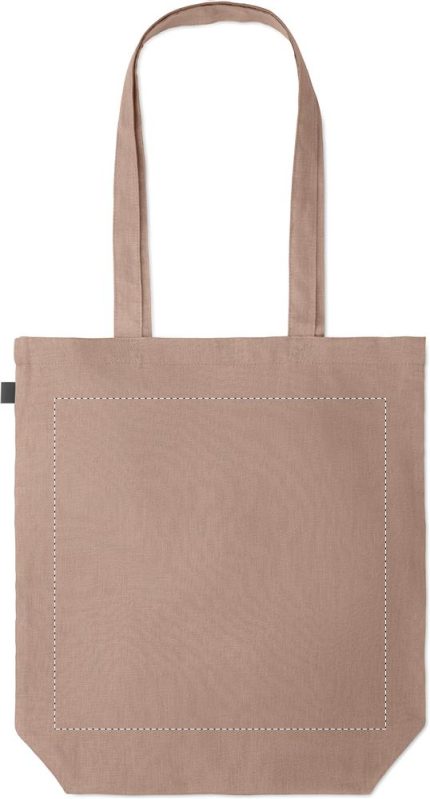 100% hemp fabric shopping bag with long handles with gusset in the bottom. 200 gr/m².
