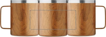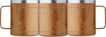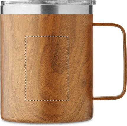 Double wall recycled stainless steel (90% recycled stainless and 10% stainless steel) mug with wooden look and sliding sip hole cover. Capacity: 300 ml.