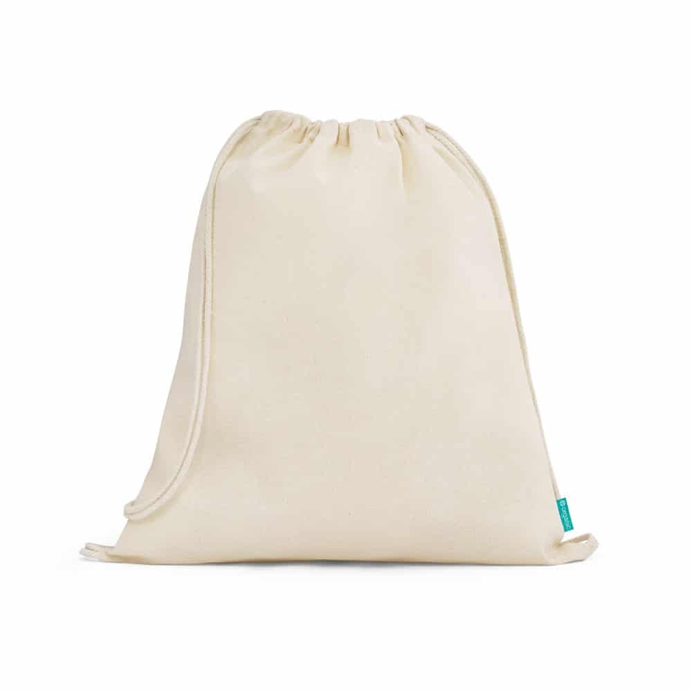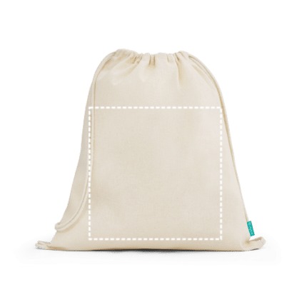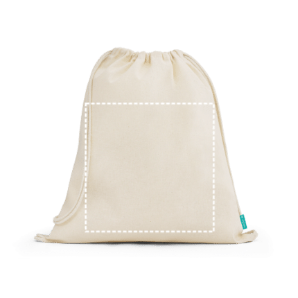 100% organic cotton drawstring bag (120 g/m²) made from sustainable cultivation, without chemicals or pesticides. 370 x 410 mm