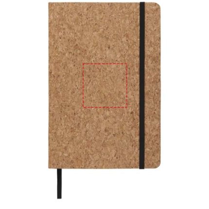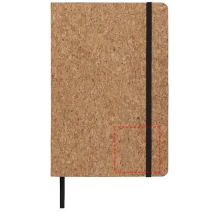 An A5 sized notebook with cork cover, black elastic and ribbon. Includes 80 sheets of 70g/m2 lined paper.