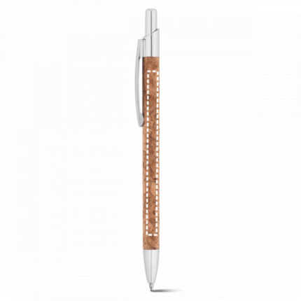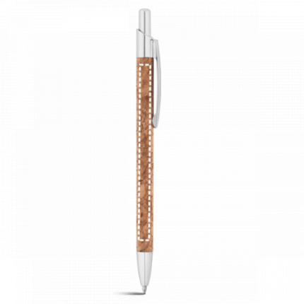 Cork and aluminium ballpoint with clip. Supplied with a Kraft paper gift pouch. ø9 x 139 mm | Pouch: 155 x 40 mm