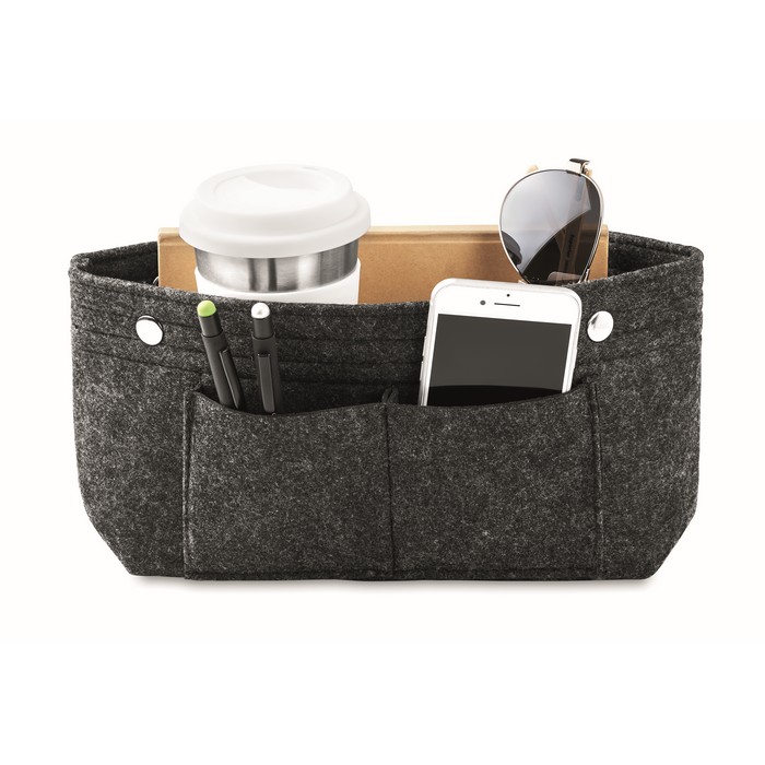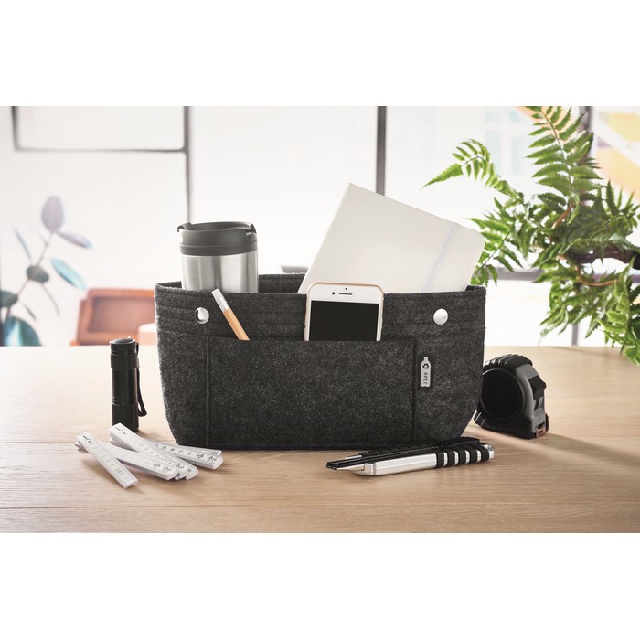 RPET felt travel organizer with 5 inner and 3 outer compartments.