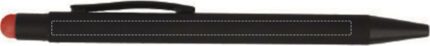 Push button stylus pen in aluminium. When the logo is engraved on to the barrel, the colour revealed matches the colour of the touch tip. Blue ink.