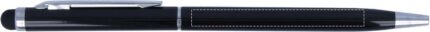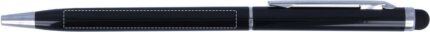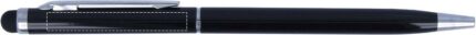 Twist action ball pen in aluminium with stylus and shiny chrome clip. Blue ink.